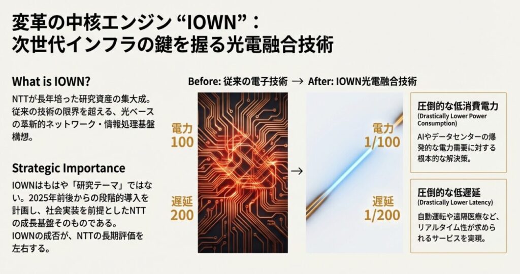 →IOWNの成否が、NTTの長期評価を左右する最大要因といえます。
